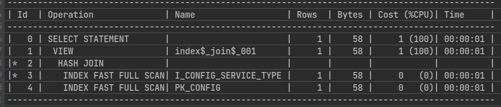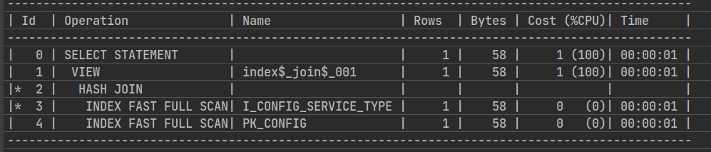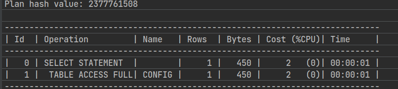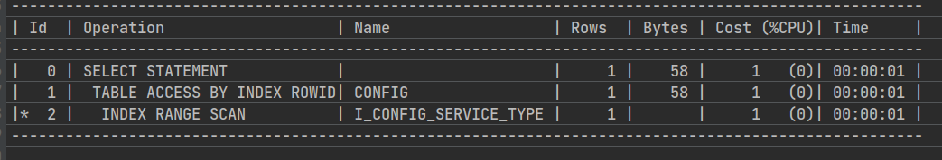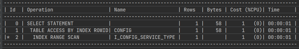 explain plan for select * from ATHENA.CONFIG where service=1;