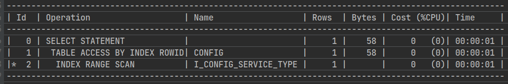 explain plan for select * from ATHENA.CONFIG where service =1 and type='d';